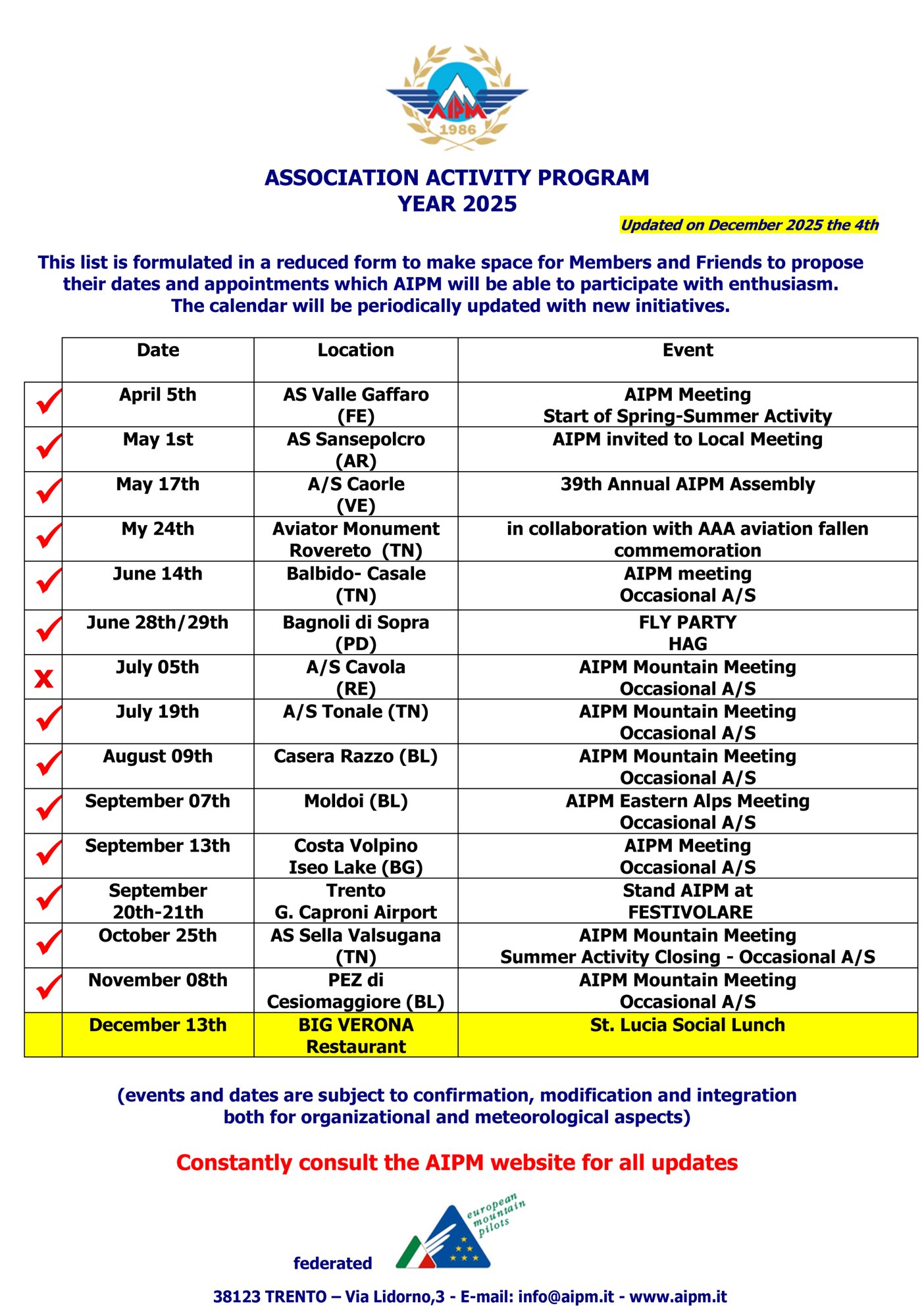 Constantly consult the AIPM website for all updates