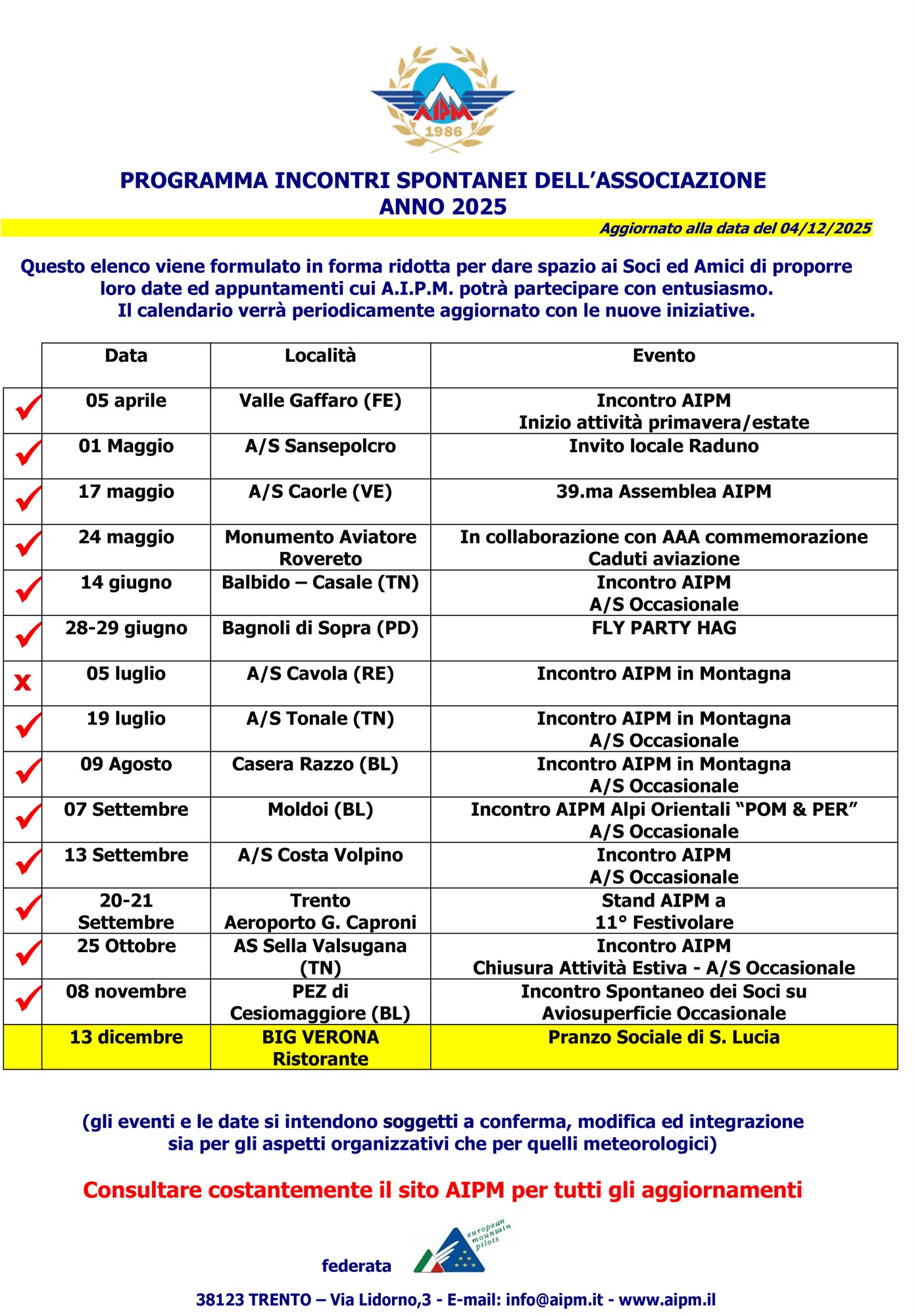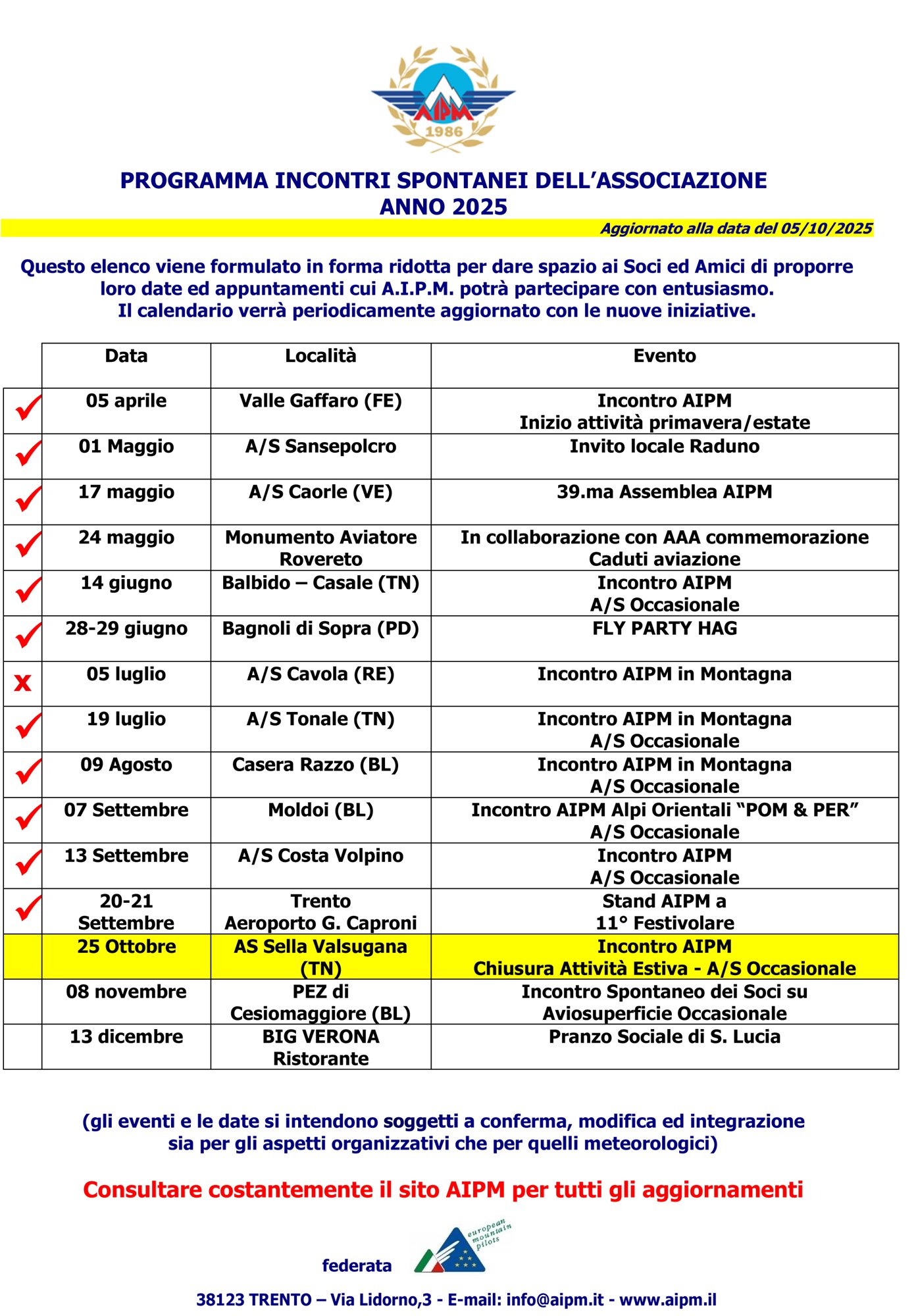 Consultate costantemente il sito AIPM per tutti gli aggiornamenti