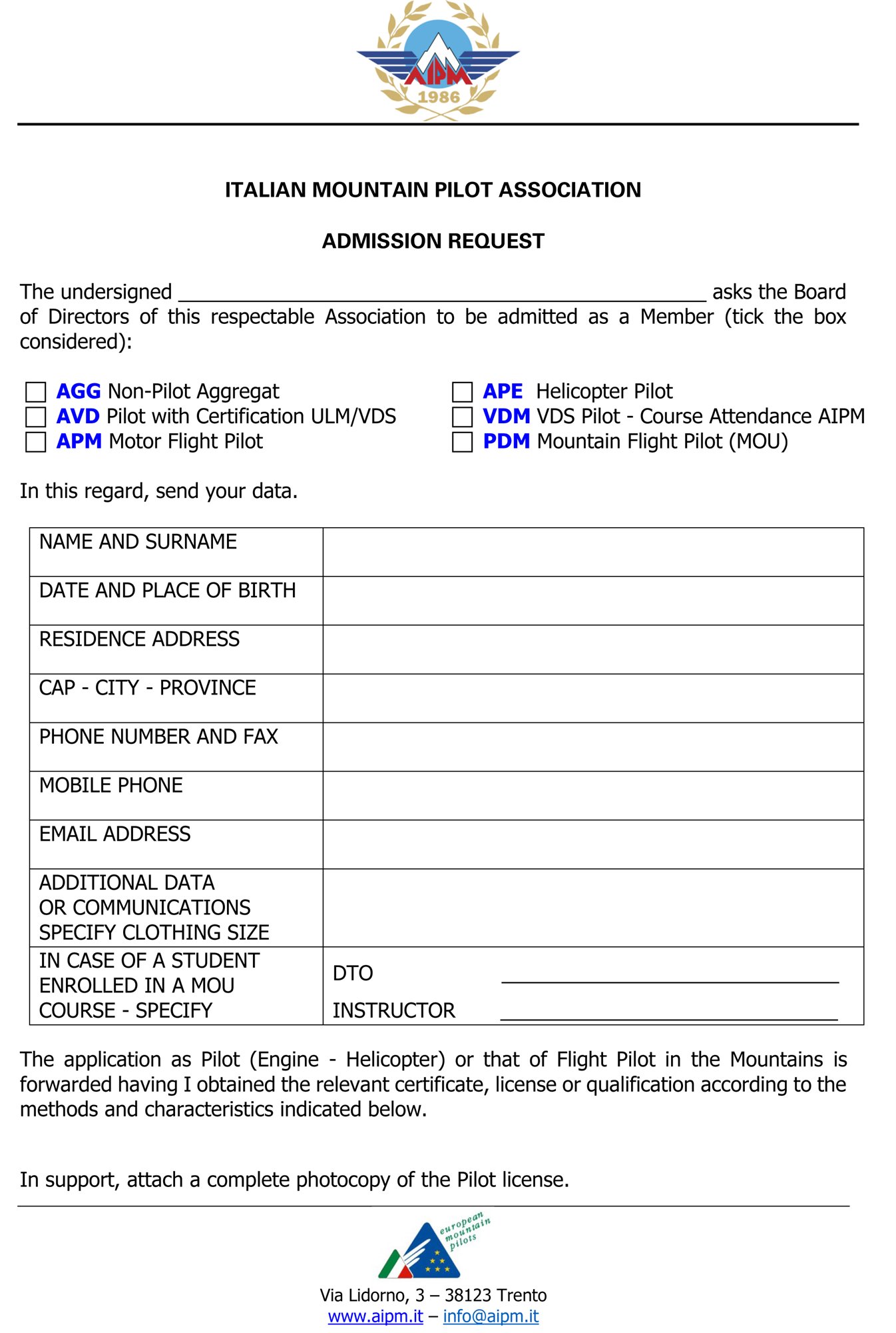 This immage is an example. To complete the admission request, click on the link below to open the form and fill in all four pages